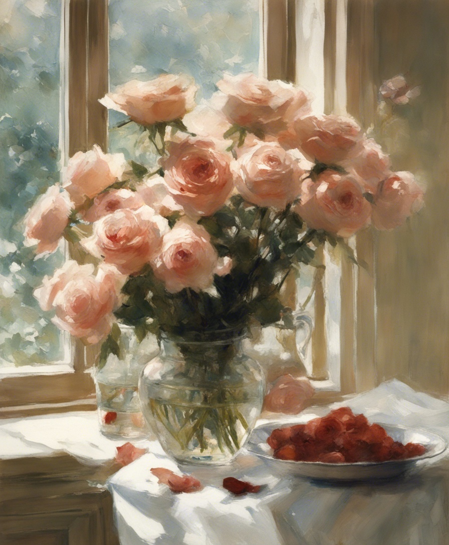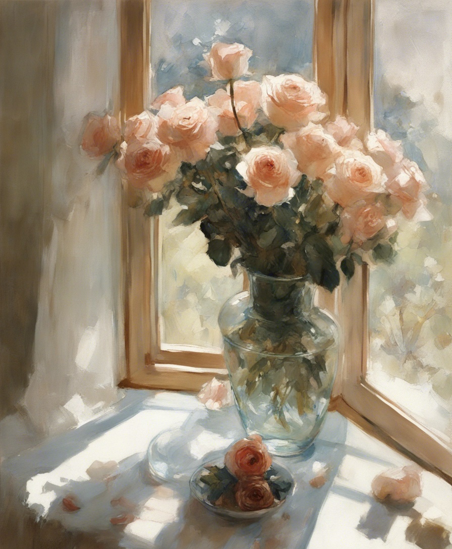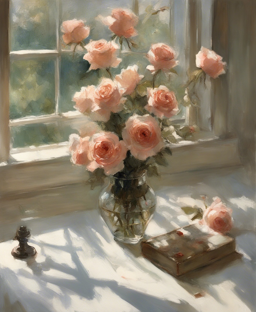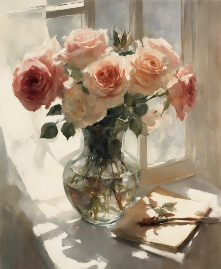 ジャンル:静物画 タイトル:「午後の光に包まれた薔薇」