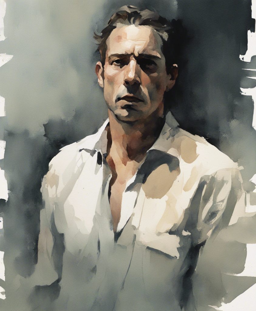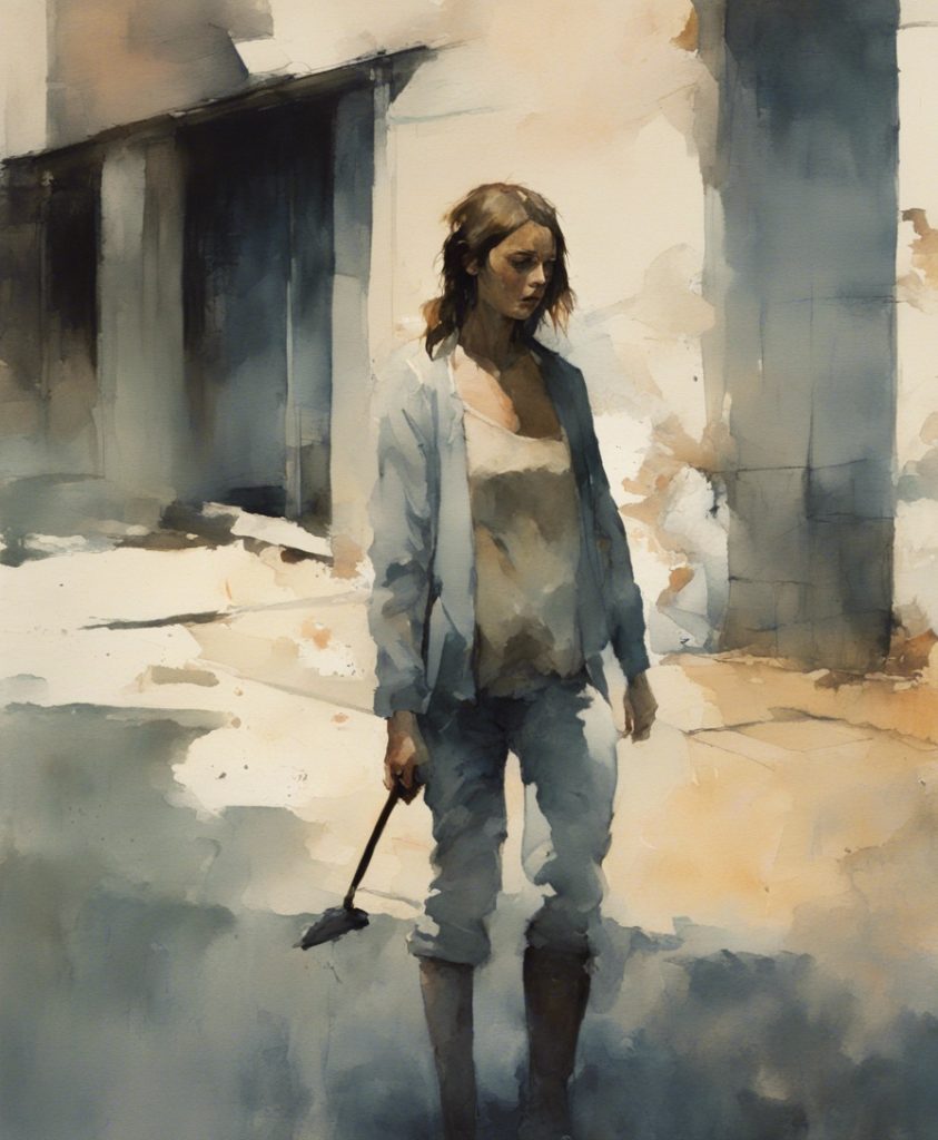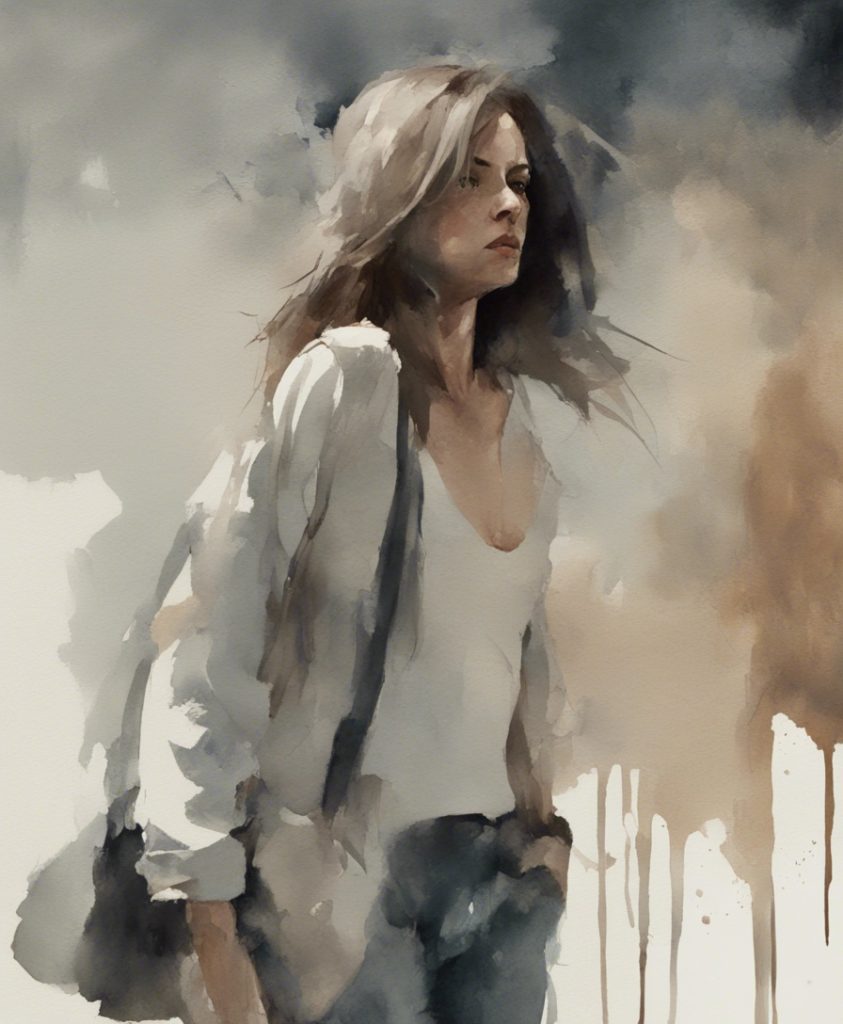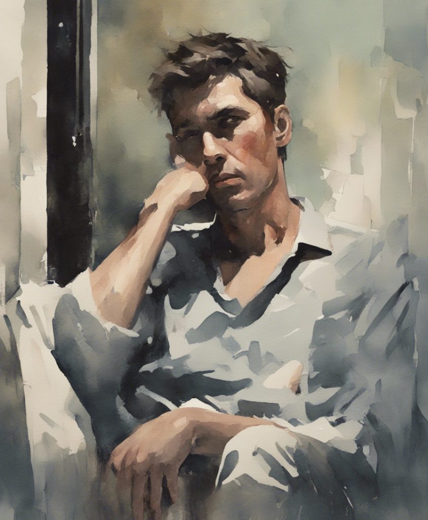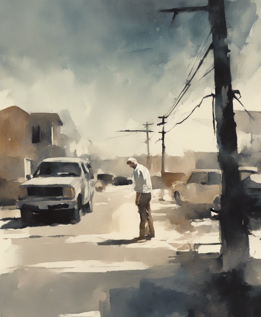 都会のざわめきの中で独り佇む一人の老紳士を描いています。彼の顔には、言葉にできない後悔や謝罪の感情が込められており、観る者に深い共感を呼び起こします。エルトン・ジョンの「Sorry Seems To Be The Hardest Word」の旋律が、まるで背景の一部としてこの絵に溶け込んでいるかのようです。色彩は抑えられており、その静かなトーンが内省的な雰囲気を強く印象づけています。