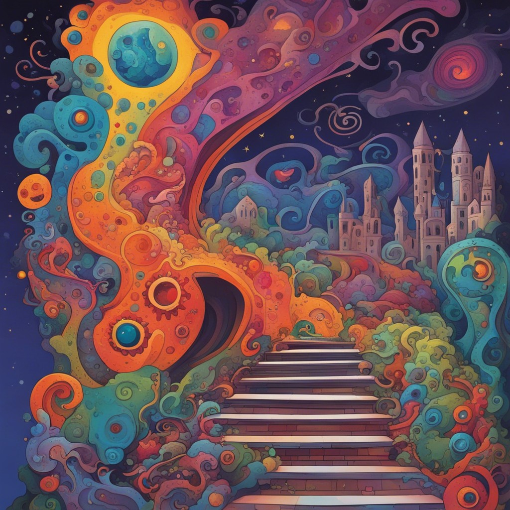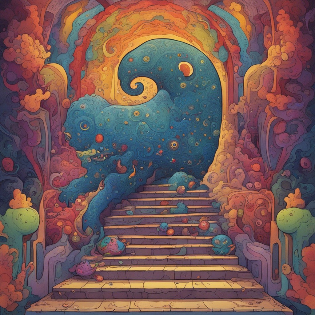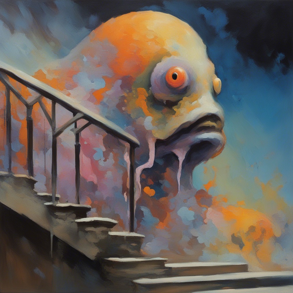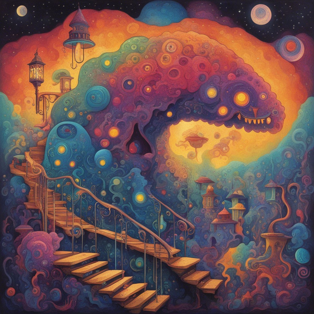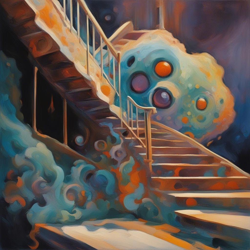 ハッシュタグ:#夜,#階段,#生命体,#幻想,#印象派,#ファンタジー,#謎,#アート