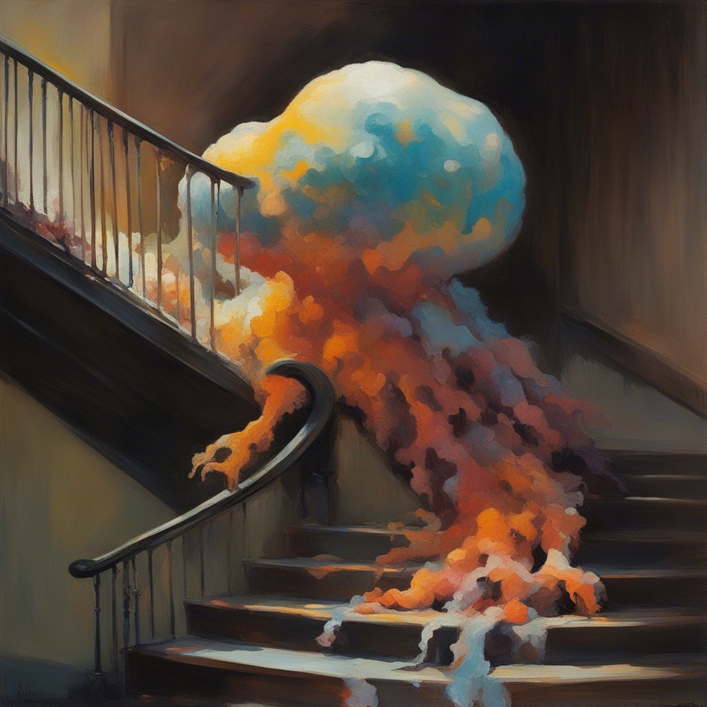 ジャンル:幻想的印象派 タイトル:「夜が階段を上っていく」