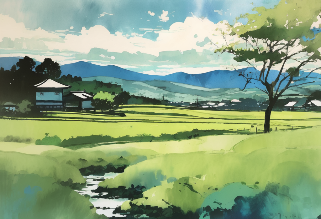 ジャンル:現代風景画  タイトル:「静謐なる湖畔の休息」 / “Serenity by the Lakeside”