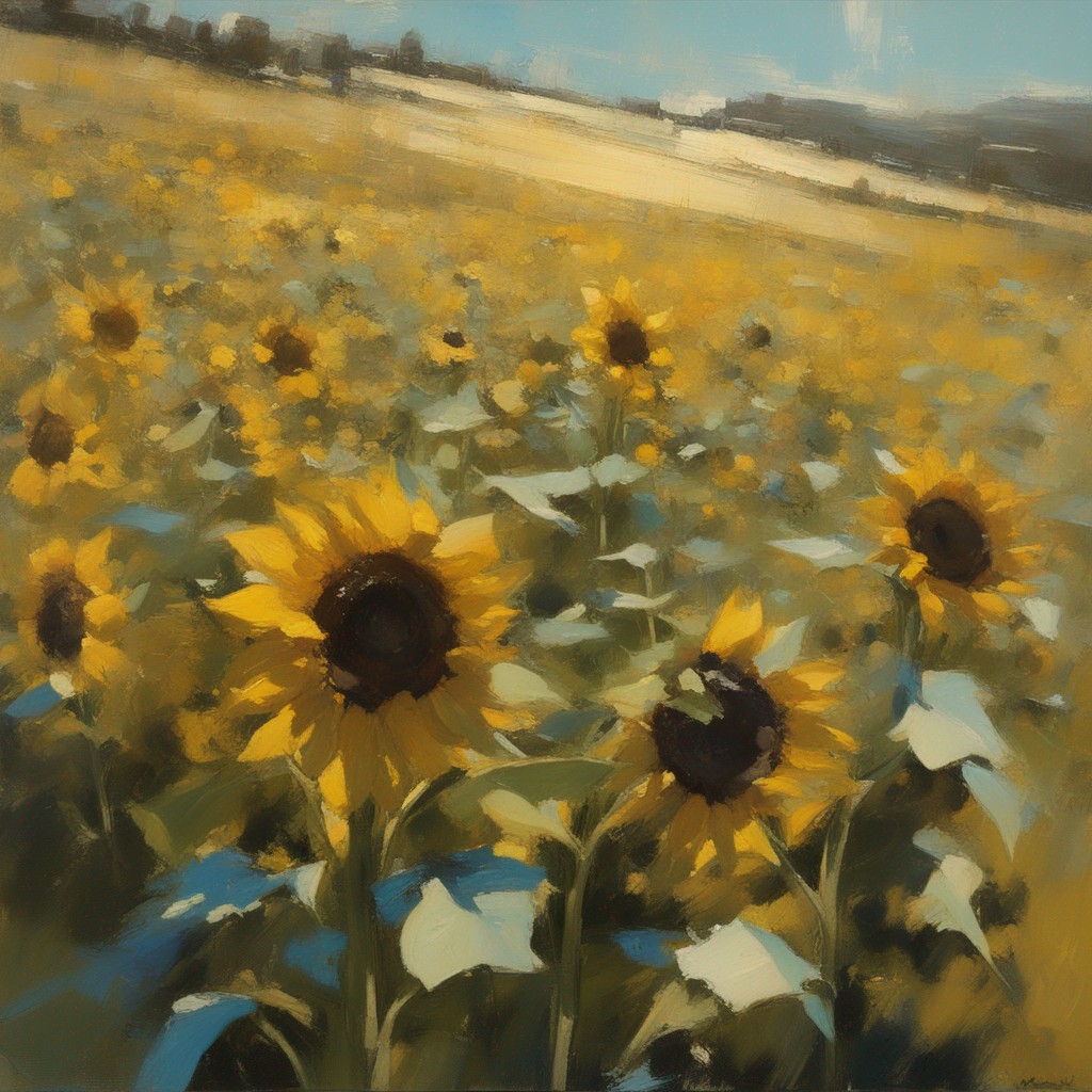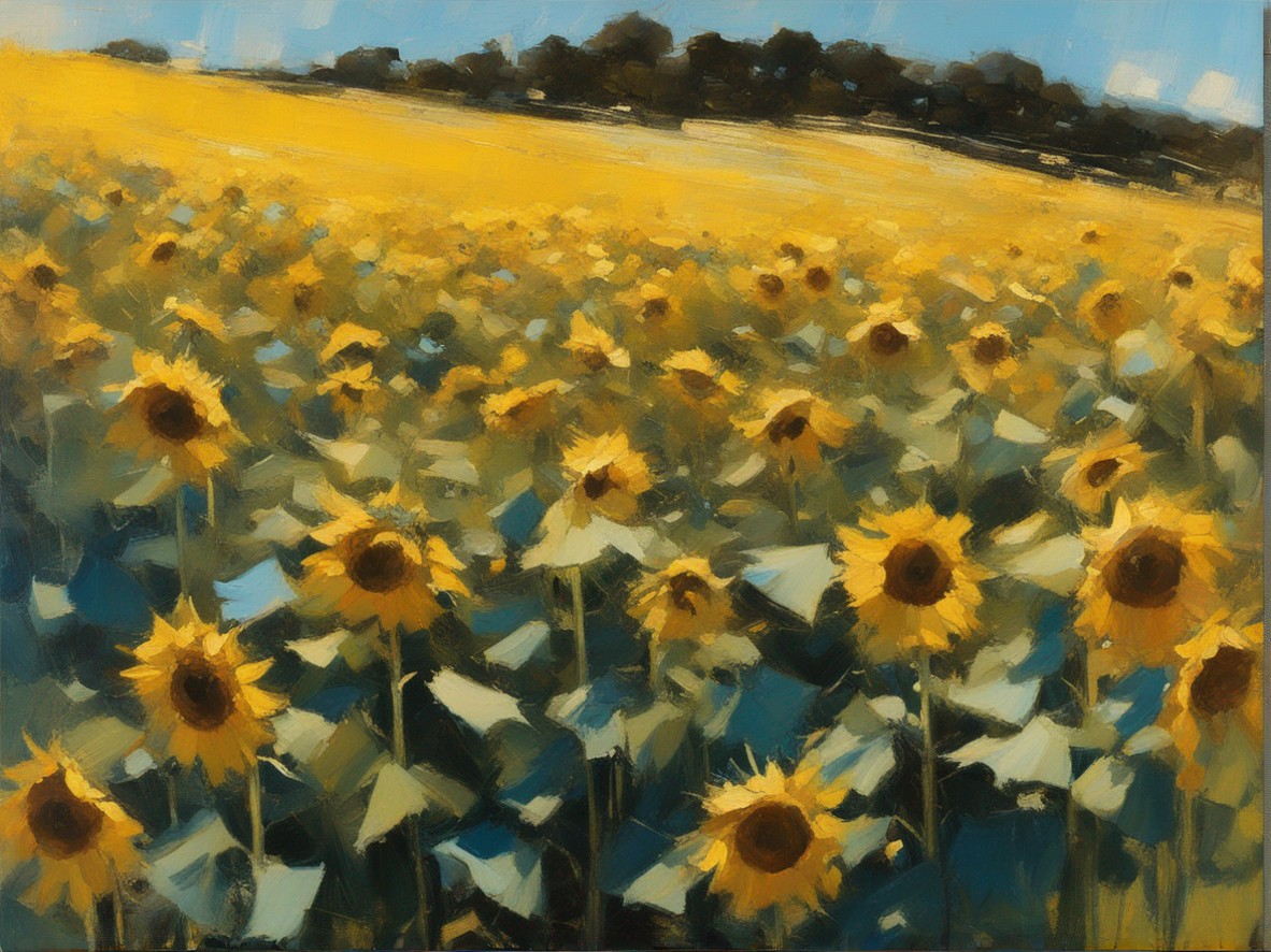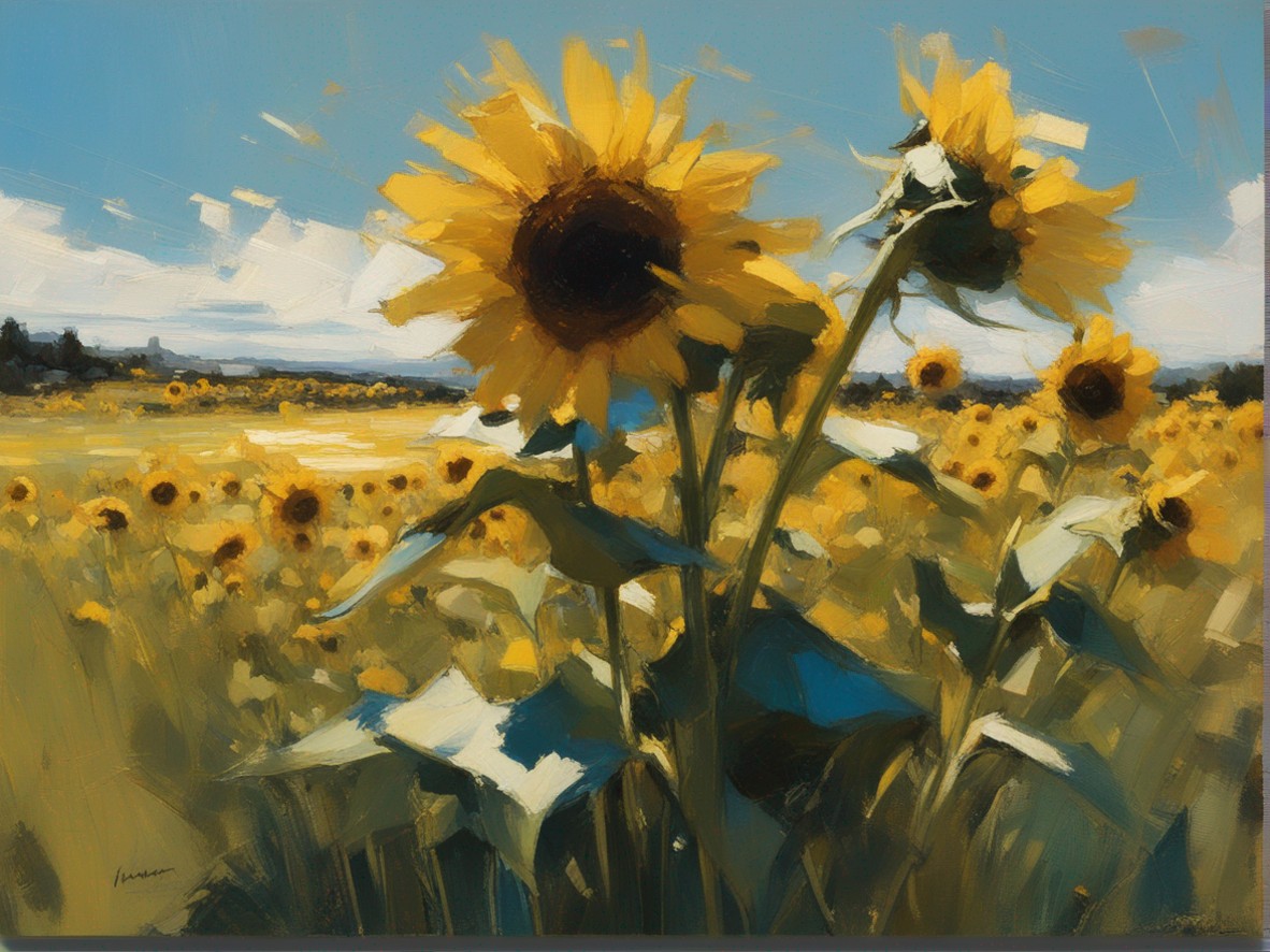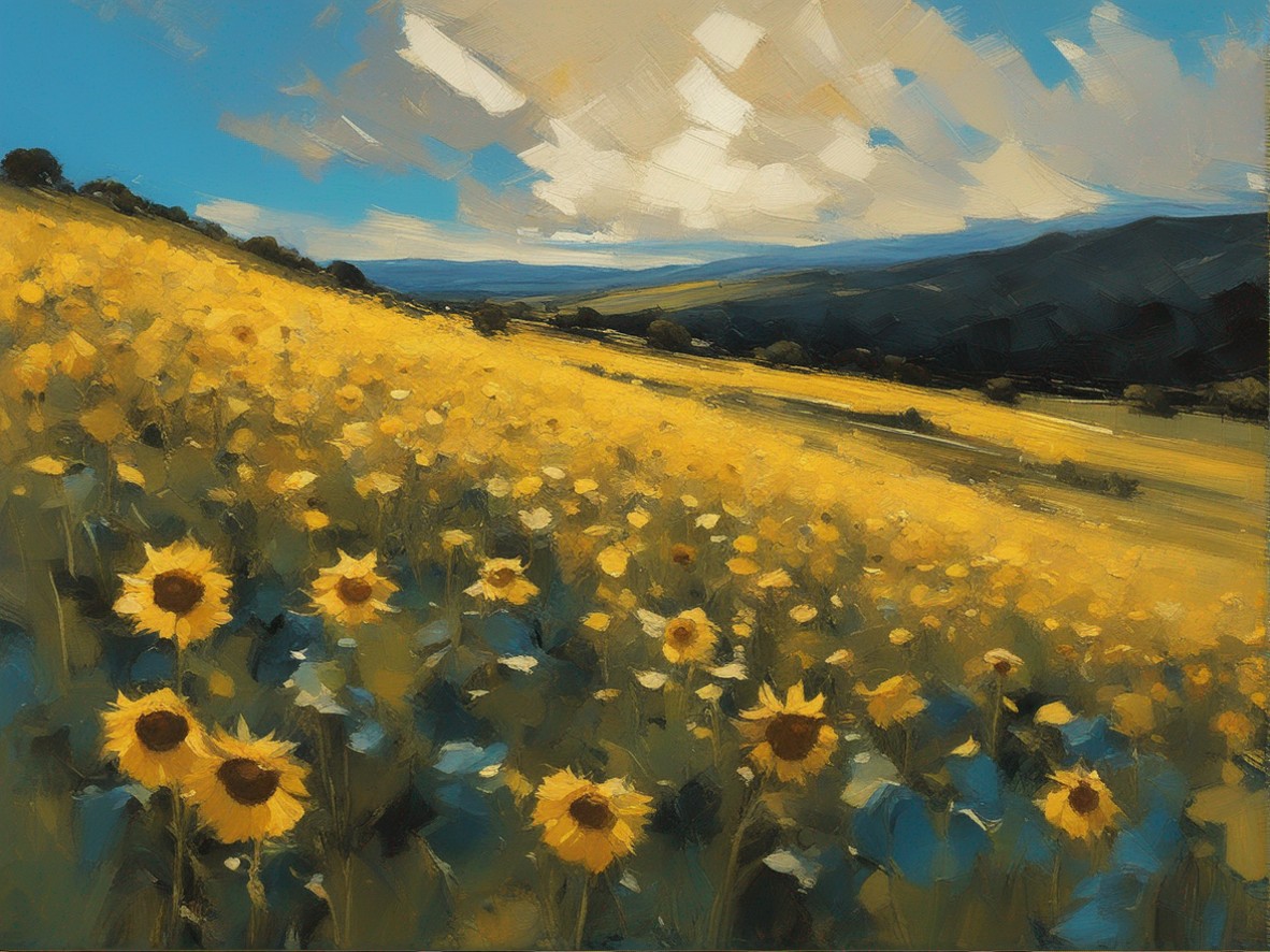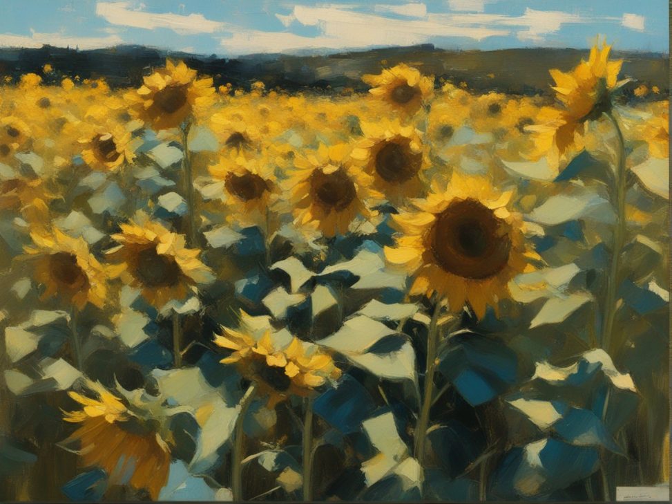 ジャンル:風景画 タイトル: 蒼穹の下のひまわり畑 /Sunflowers Beneath the Azure Sky