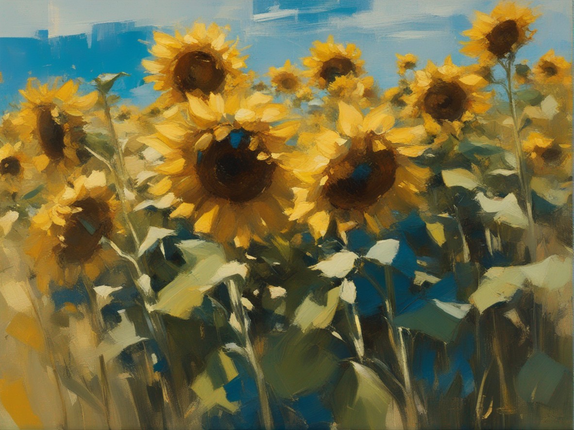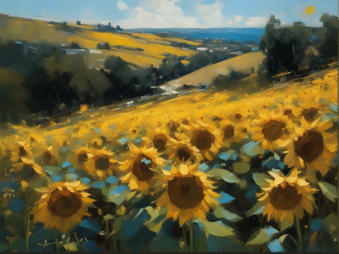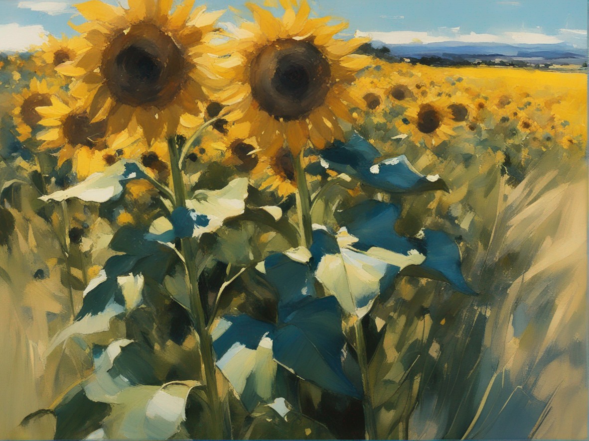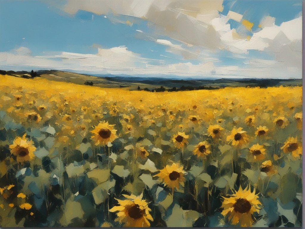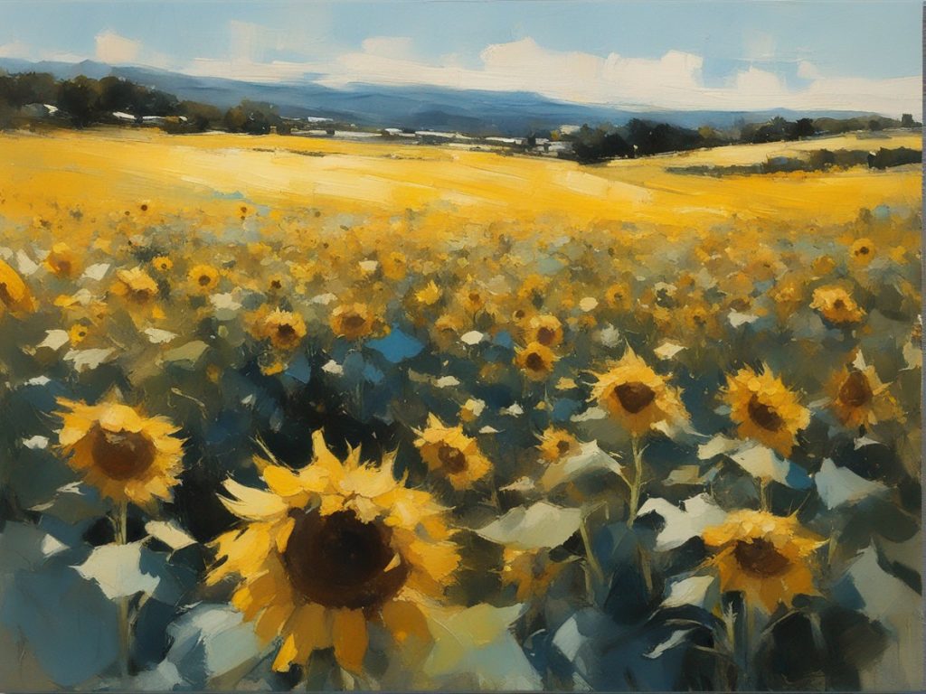 ジャンル:風景画 タイトル: 蒼穹の下のひまわり畑 /Sunflowers Beneath the Azure Sky