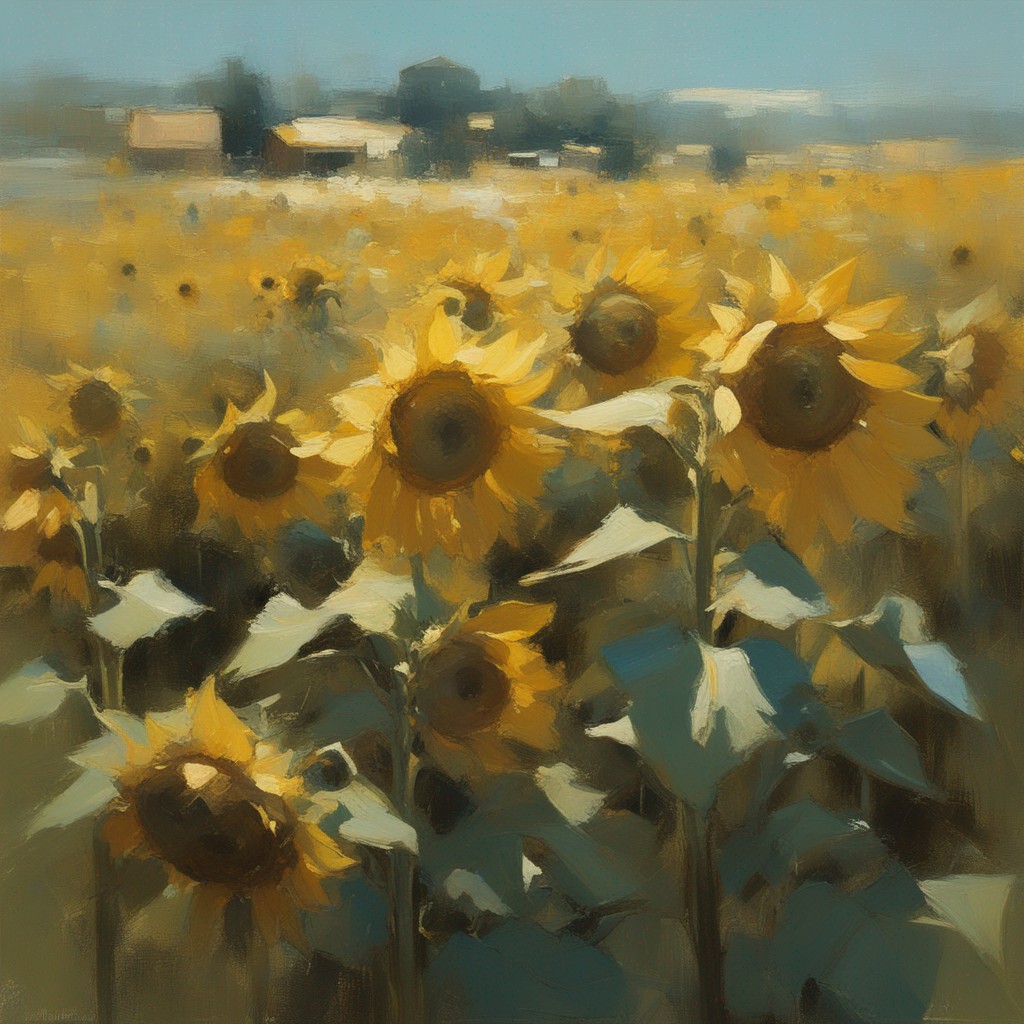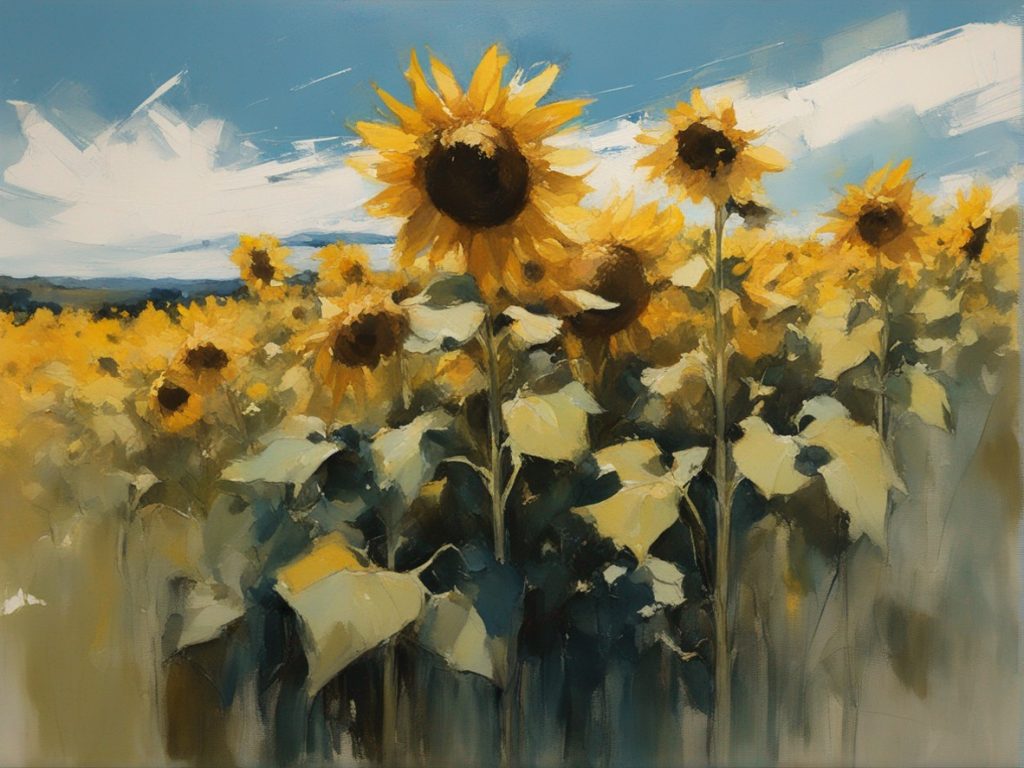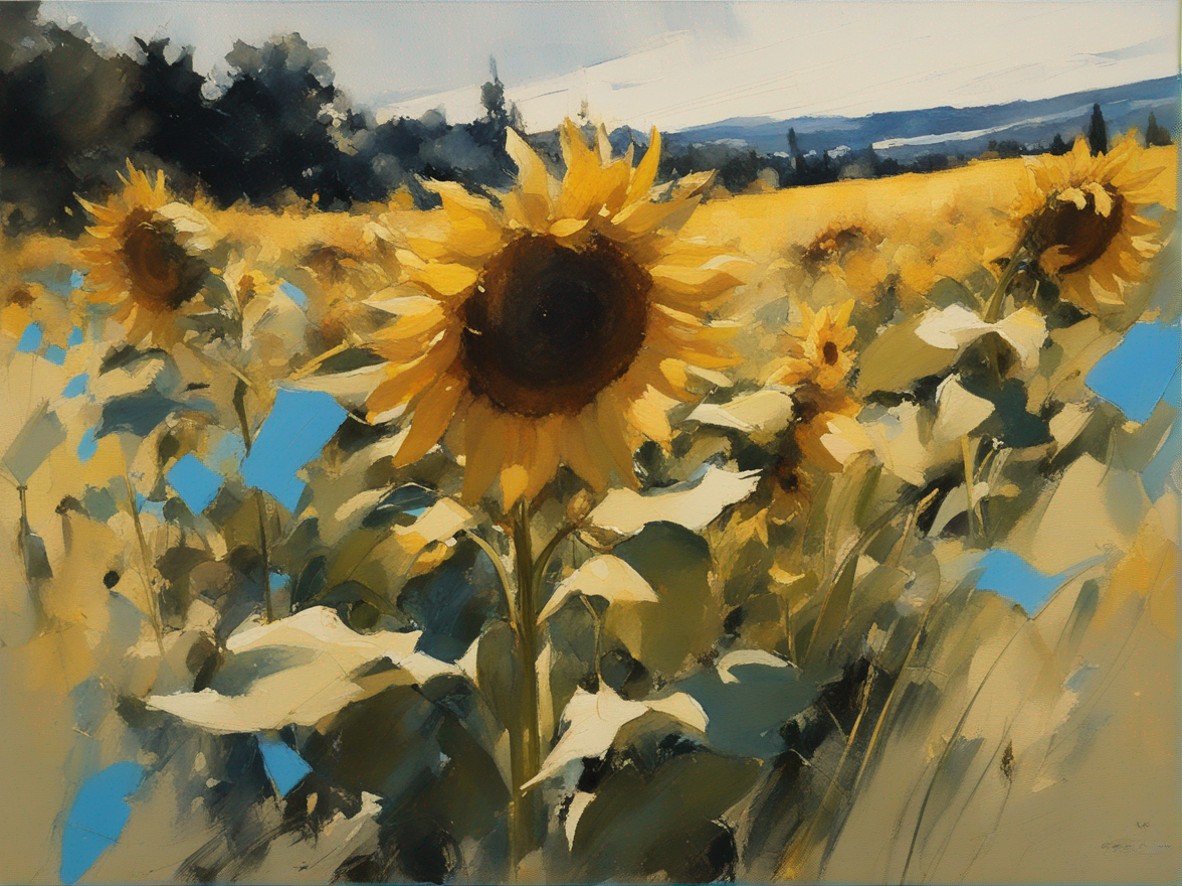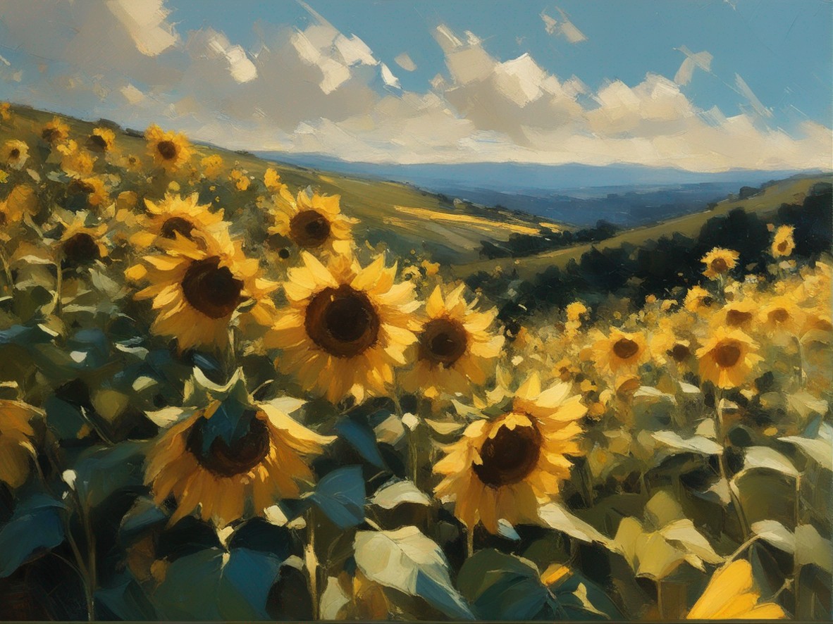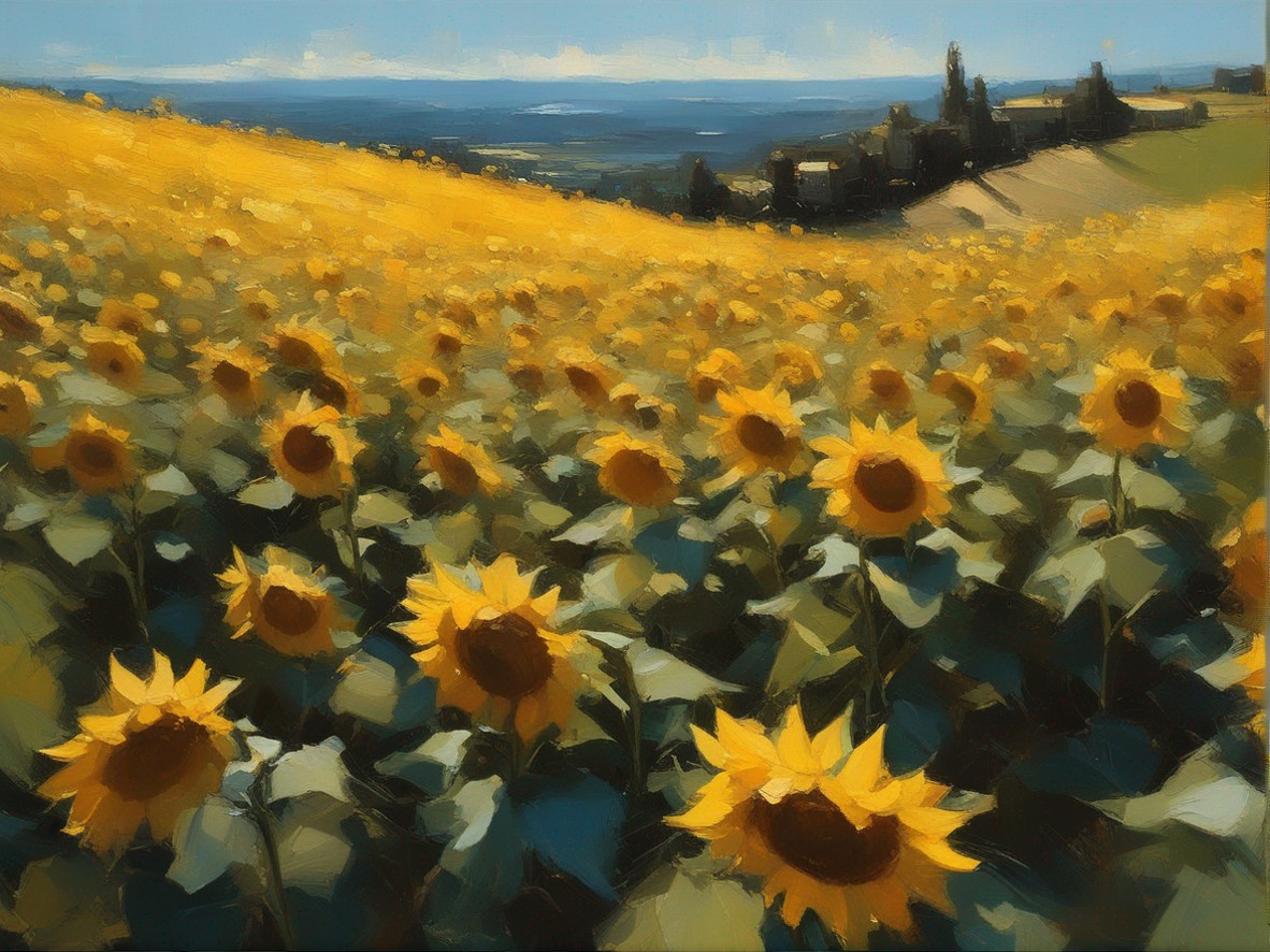 ジャンル:風景画 タイトル: 蒼穹の下のひまわり畑 /Sunflowers Beneath the Azure Sky