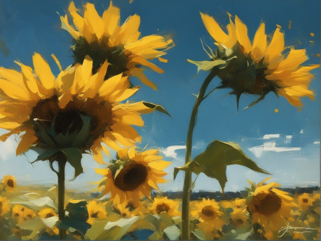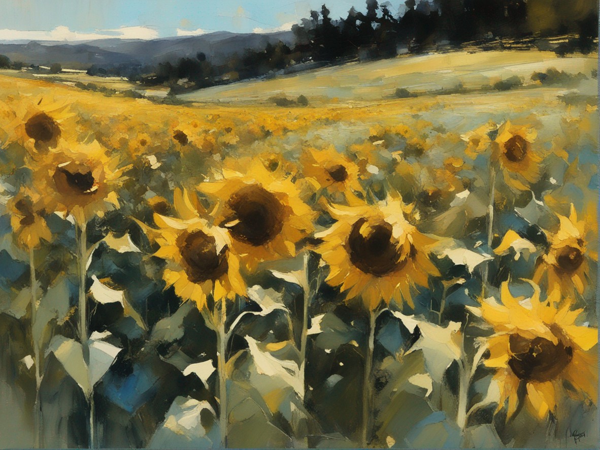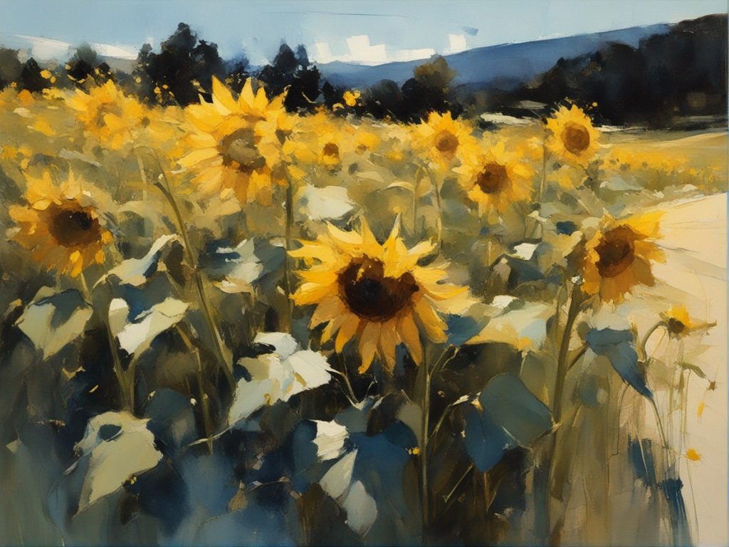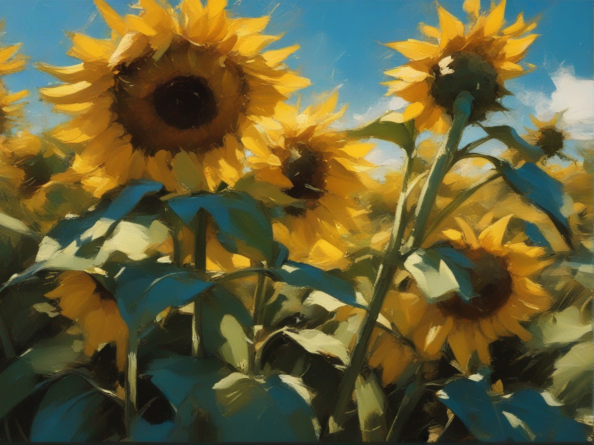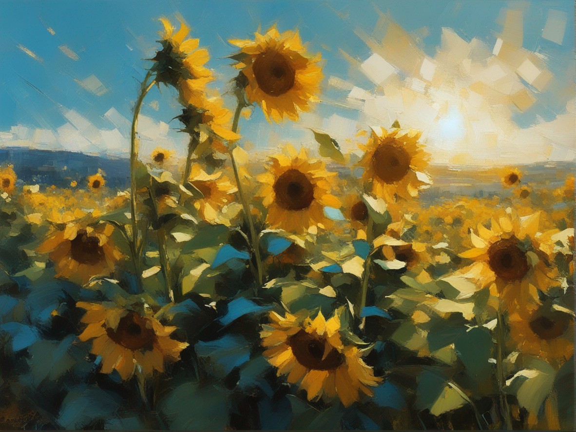 ジャンル:風景画 タイトル: 蒼穹の下のひまわり畑 /Sunflowers Beneath the Azure Sky